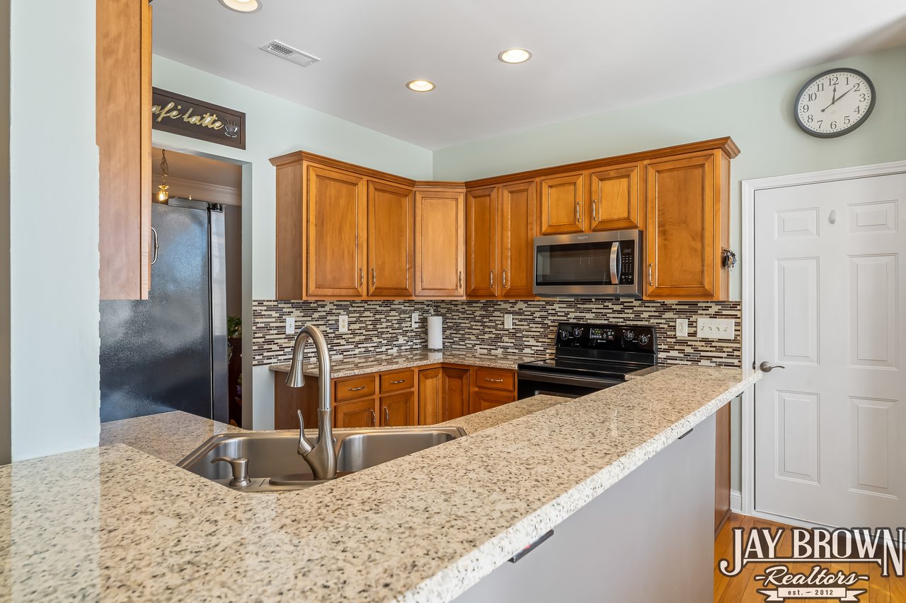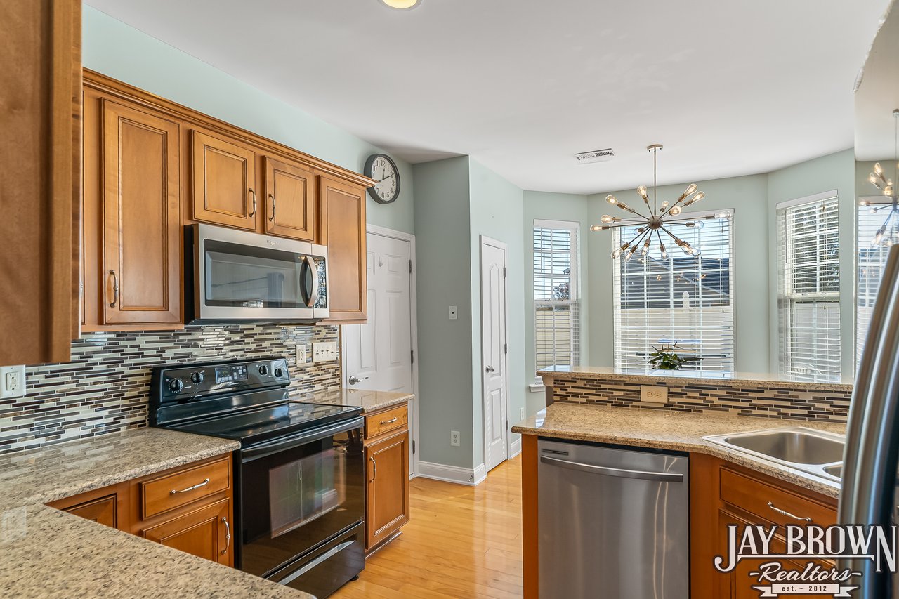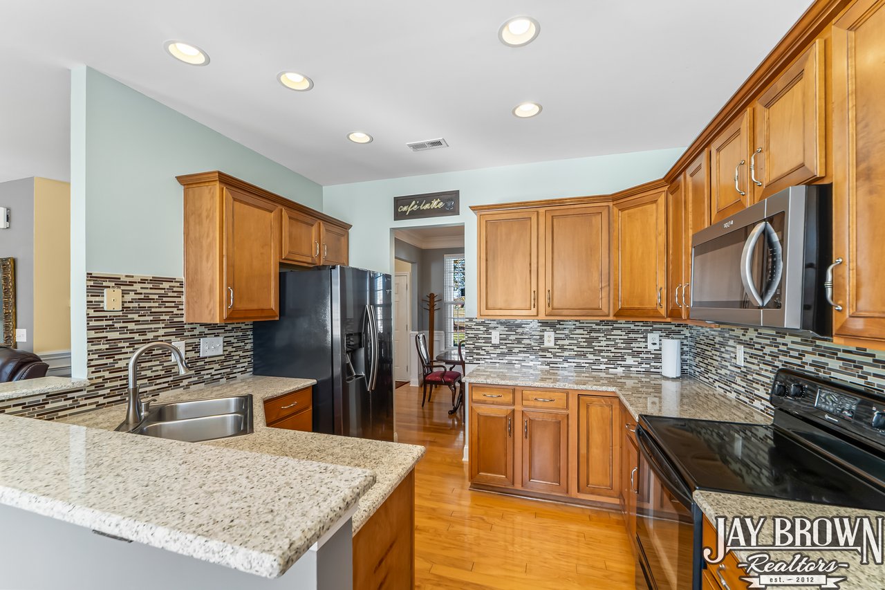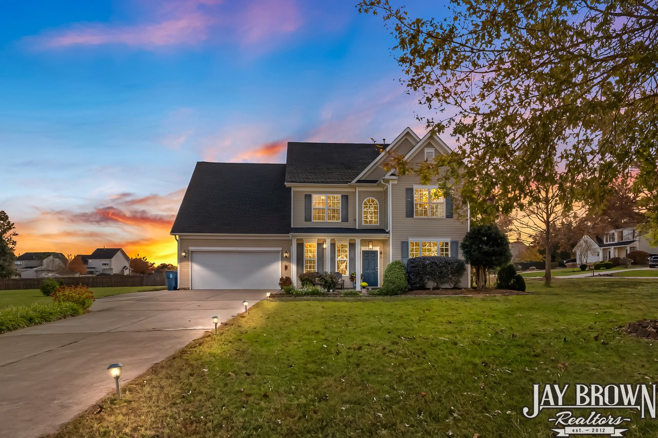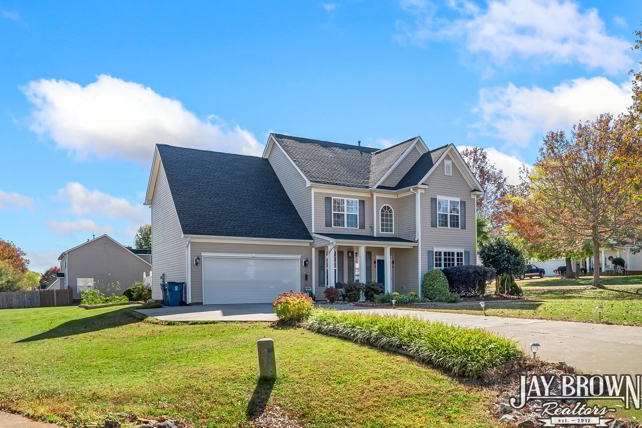 This incredible 4BR/2.5BA home in the Mountain View school district is immaculately maintained, FULL of updates and offers a sprawling backyard! New roof in 2021! The kitchen offers ample cabinet space, bar seating, pantry storage and a wonderful eat-in area. Kitchen has been updated with a new tile backsplash, new granite countertops, new dishwasher and new microwave. The open floor plan flows into the bright and open living room, which features a gas fireplace and is surrounded by natural light. Beautiful chair railing and bright windows accent the large dining room, which is located just off the kitchen, perfect for entertaining. A large and private office on the main level offers the perfect work from home area or flex space! Half bath on the main level features new tile backsplash and main level light fixtures were updated in 2025. First floor and second floor both feature new laminate wood flooring! Primary bedroom is spacious and accented with tray ceilings. Primary bathroom features double vanity, soaking tub, large shower and spacious walk-in closet. Three more bedrooms on the second level, along with a second full bath. Third bedroom on the upper level is oversized, perfect for a movie room/hobby room/game room! Large patio area features privacy with beautiful white fencing. The spacious backyard offers so much outdoor space to enjoy! Two car garage features tool bench and epoxy flooring. New water heater in 2019. Neighborhood features sidewalks and common area. No city taxes! Mountain Elementary/Jacobs Fork Middle/Fred T. Foard High school districts. Only minutes to I-40 and Hwy 321!