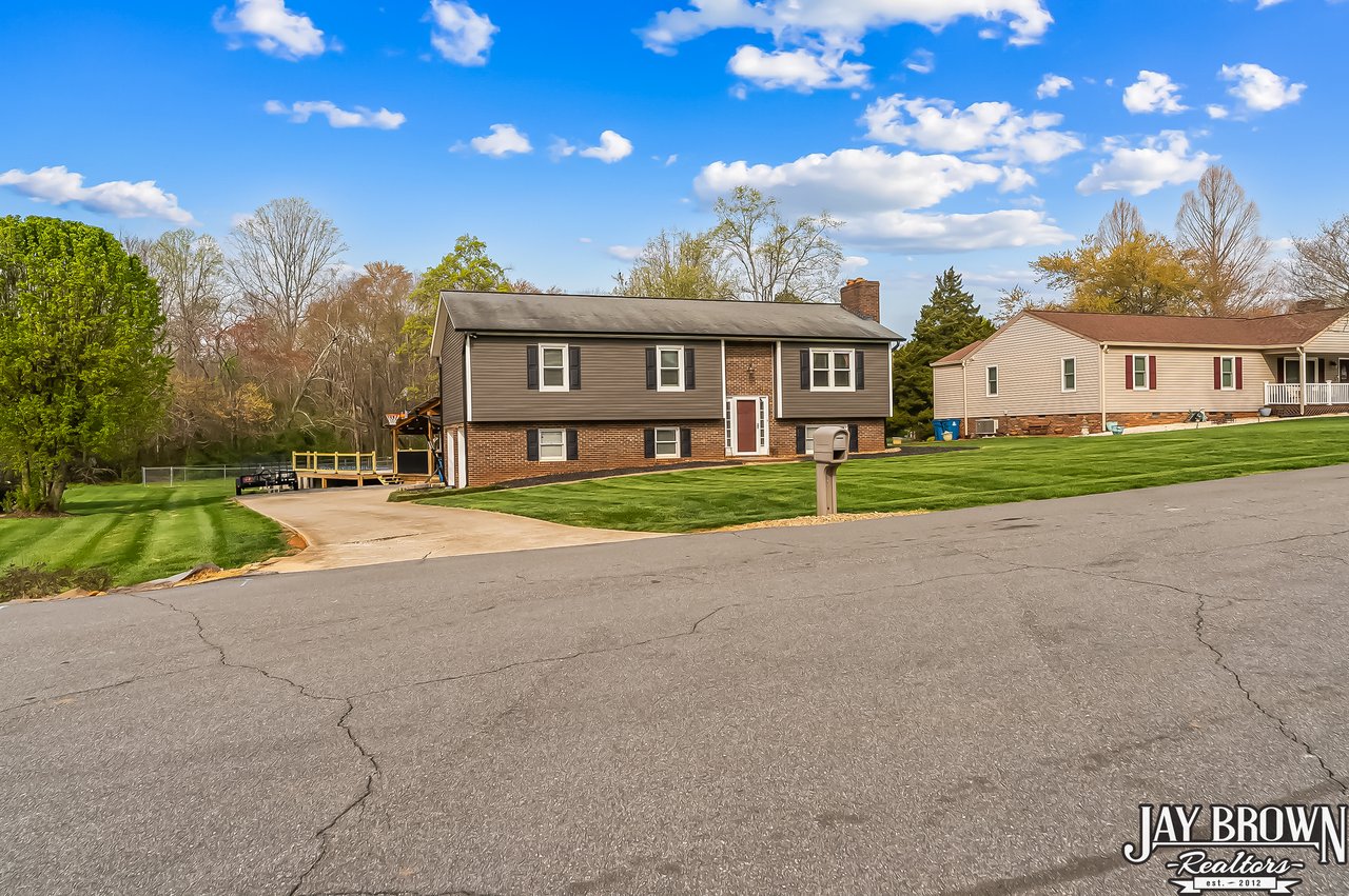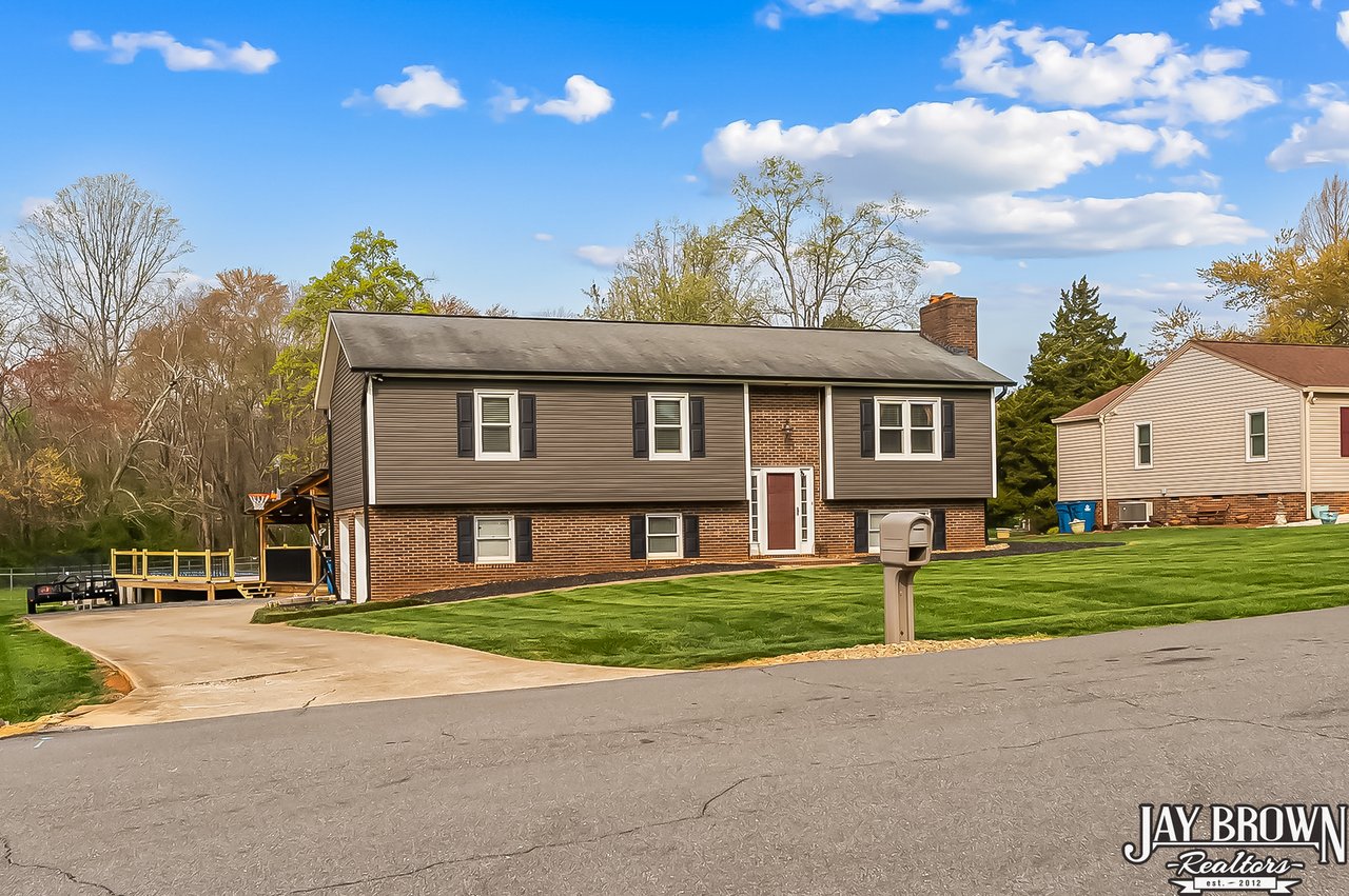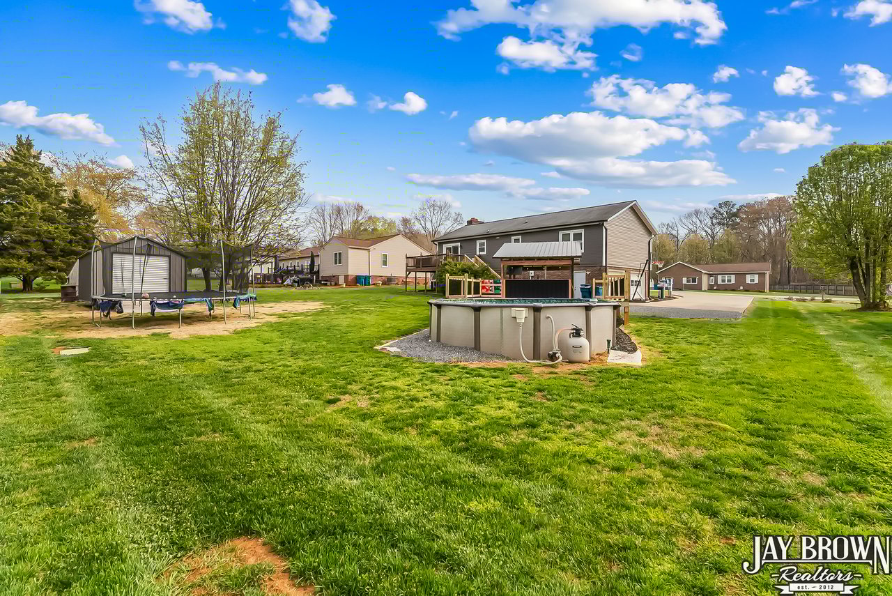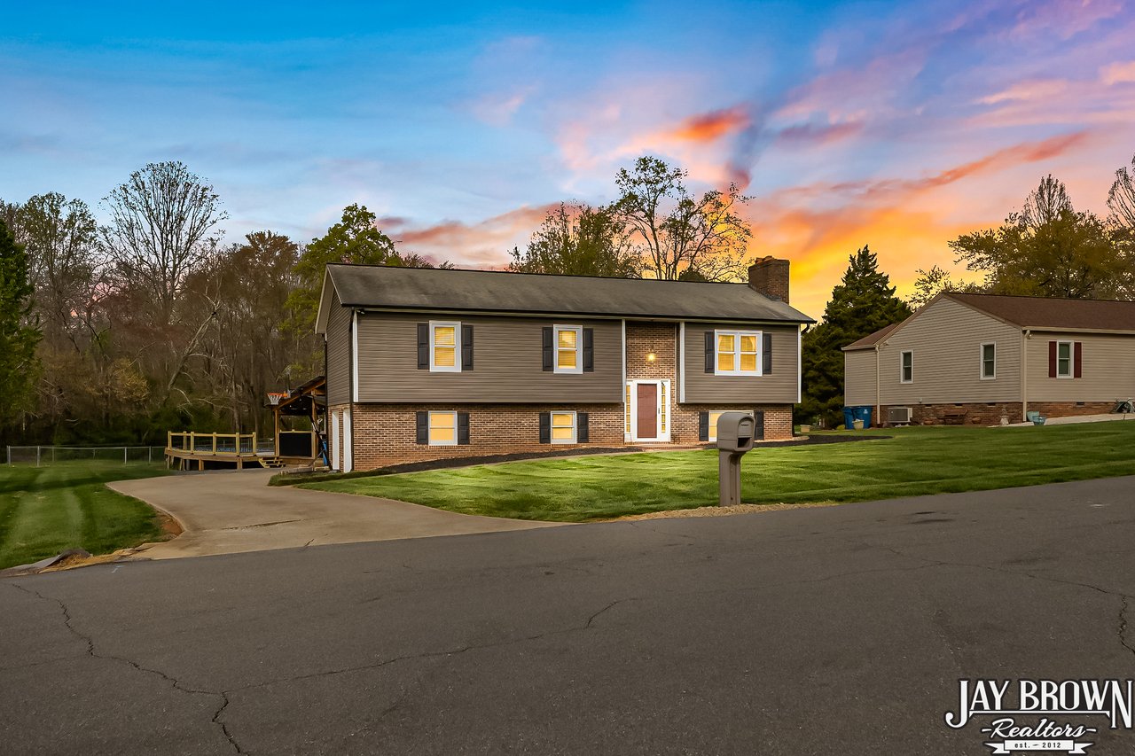 Located in the desirable Mountain View school district, this beautiful 3BR/2.5BA home features a finished basement, an updated kitchen and an incredible outdoor space with an above ground pool with deck and covered entertaining area, perfect for hot summer days! The beautifully updated kitchen features fresh white cabinets, large pantry, new stainless steel appliances, new countertops and LVP flooring along with a spacious eat-in area. Step out of the kitchen onto the beautiful back deck, which overlooks the large backyard and pool. The open floorplan flows into the living room, which features a brick fireplace, high ceilings and large windows. Primary bedroom is spacious and offers an en suite primary bathroom. Two more large bedrooms on the main level, along with a second full bath. Basement has been finished and features a beautiful, large laundry room with storage space and additional bathroom. Basement also offers a large rec room and additional customizable workout space! Covered bar/grill area in the backyard offers the perfect space to entertain and enjoy the outdoors! The above ground pool features a spacious deck around the pool. Storage building to remain. Spacious two car garage. New vinyl siding (2022), new windows and back sliding door (2018). Beautifully landscaped and located in a quiet cul-de-sac. Only minutes from I-40, Hwy 321 and shopping and dining. No city taxes! Mountain View Elementary, Jacobs Fork Middle, Fred T. Foard High school disticts.