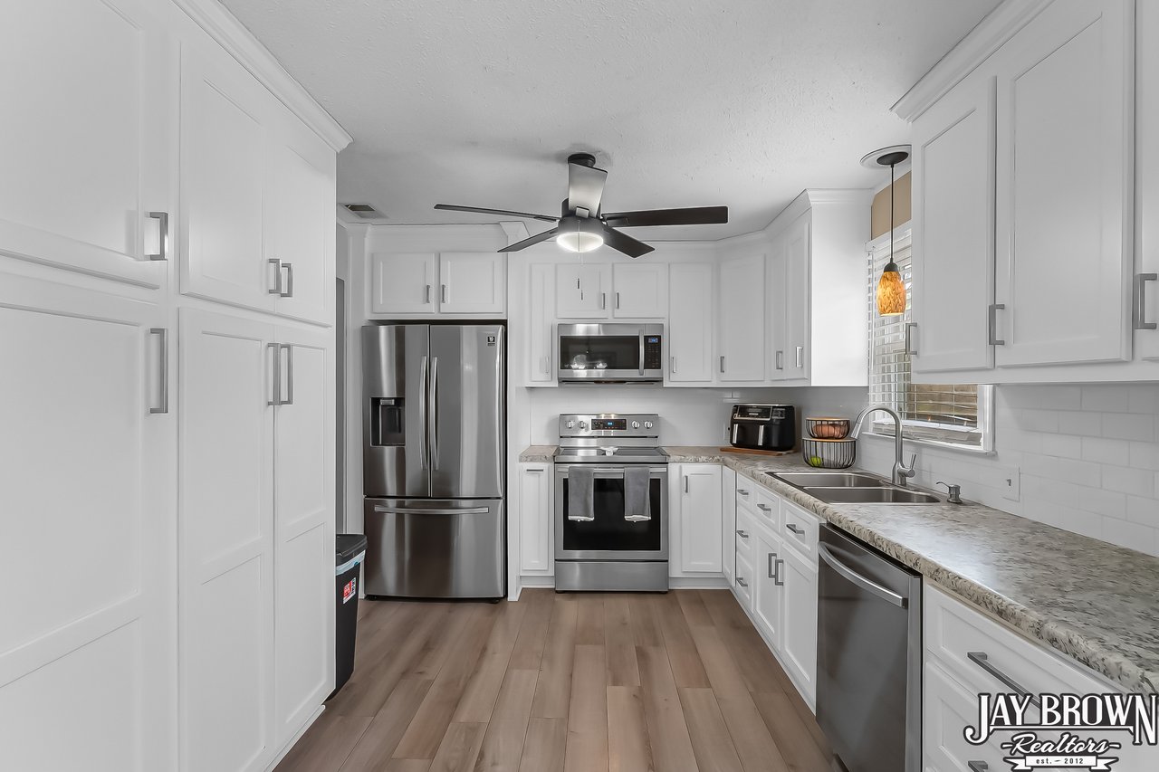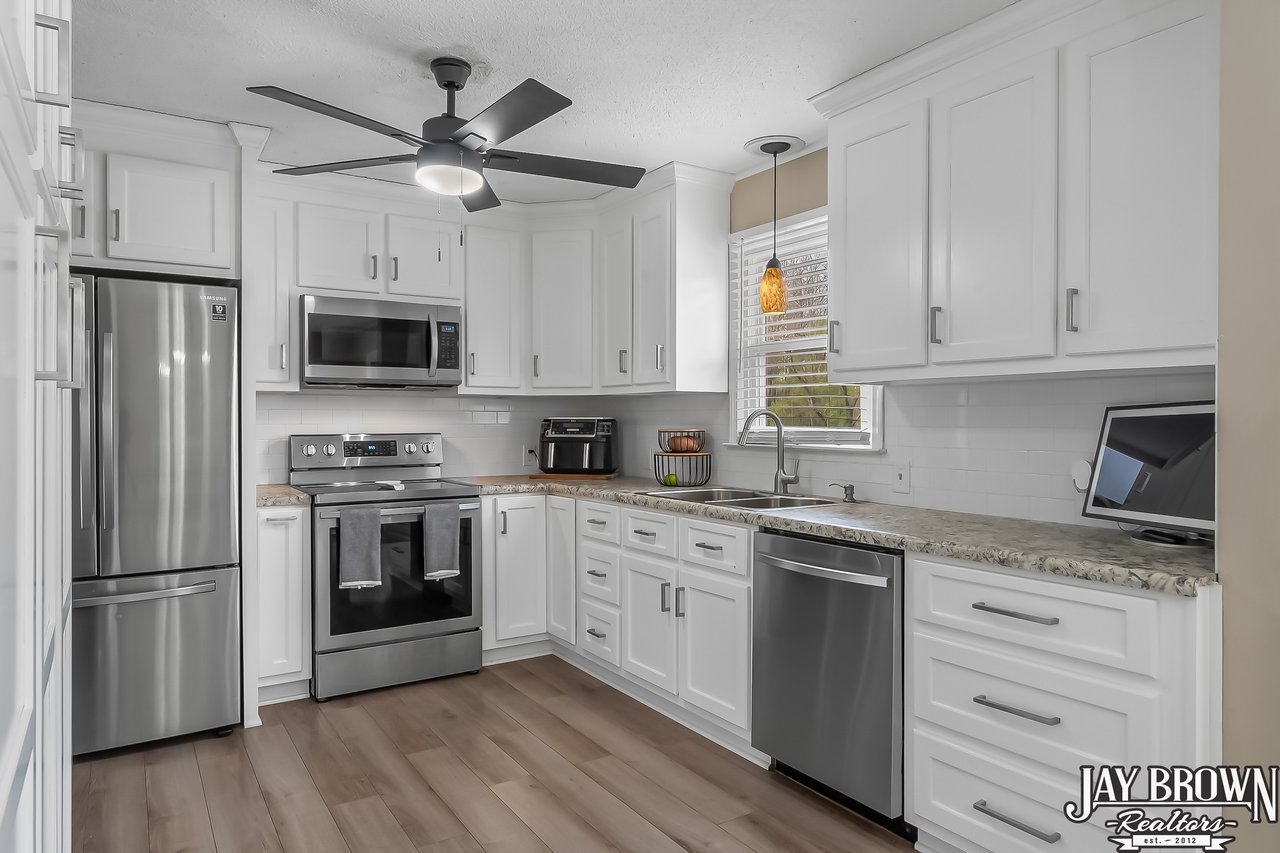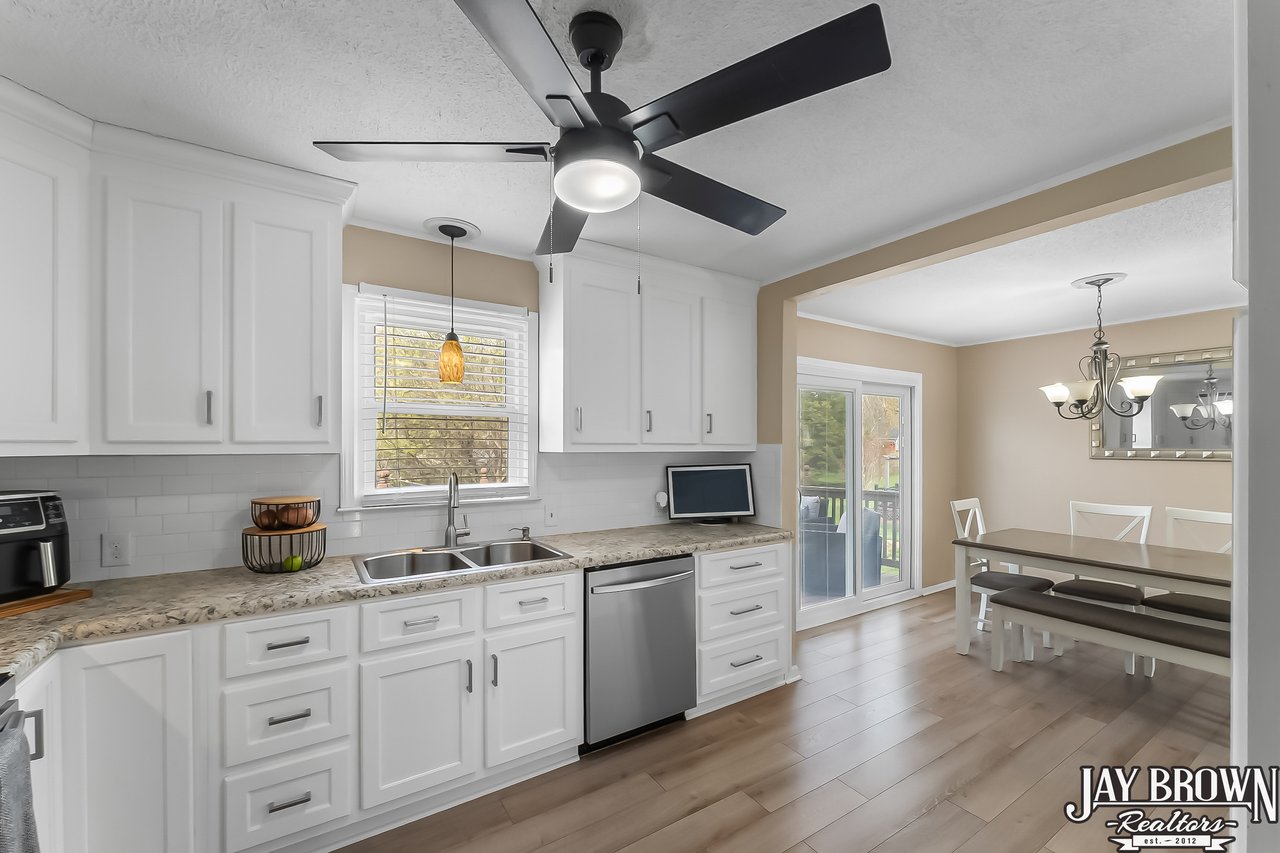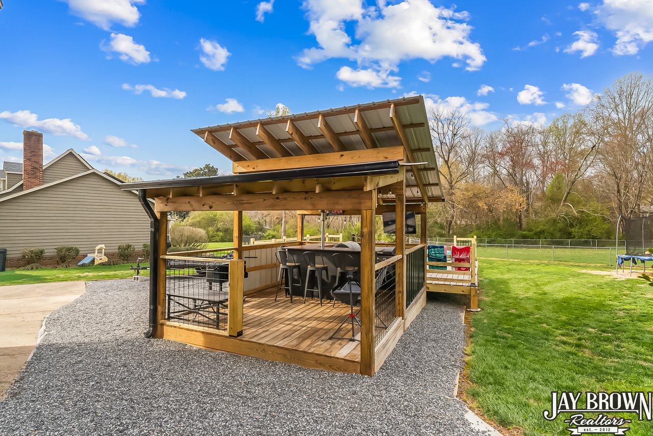 Located in the desirable Mountain View school district, this beautiful 3BR/2.5BA home features a finished basement, an updated kitchen and an incredible outdoor space with an above ground pool with deck and covered entertaining area, perfect for hot summer days! The beautifully updated kitchen features fresh white cabinets, large pantry, new stainless steel appliances, new countertops and LVP flooring along with a spacious eat-in area. Step out of the kitchen onto the beautiful back deck, which overlooks the large backyard and pool. The open floorplan flows into the living room, which features a brick fireplace, high ceilings and large windows. Primary bedroom is spacious and offers an en suite primary bathroom. Two more large bedrooms on the main level, along with a second full bath. Basement has been finished and features a beautiful, large laundry room with storage space and additional bathroom. Basement also offers a large rec room and additional customizable workout space! Covered bar/grill area in the backyard offers the perfect space to entertain and enjoy the outdoors! The above ground pool features a spacious deck around the pool. Storage building to remain. Spacious two car garage. New vinyl siding (2022), new windows and back sliding door (2018). Beautifully landscaped and located in a quiet cul-de-sac. Only minutes from I-40, Hwy 321 and shopping and dining. No city taxes! Mountain View Elementary, Jacobs Fork Middle, Fred T. Foard High school disticts.