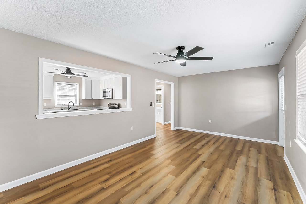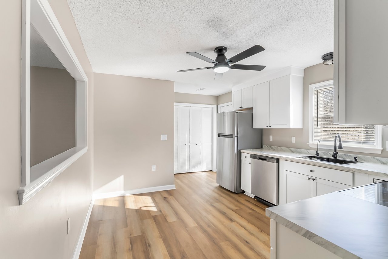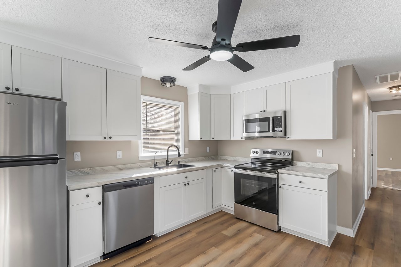 FULL of incredible updates and TRULY move-in ready! Gorgeous kitchen features brand new white cabinets, new countertops, new stainless steel refrigerator and dishwasher, new microwave and stove! Brand new LVP flooring flows throughout the entire home! Spacious bathroom features a brand new vanity with double sinks, large shower and linen closet. Primary bedroom is spacious and offers two walk-in closets. Fresh paint throughout the entire home and new ceiling fans. Back patio overlooks the large backyard and the storage shed will remain! The living room is open to the kitchen, creating an inviting atmosphere. Large rocking chair front porch and carport, along with additional parking space on the driveway. Wonderful central location; only minutes from Viewmont, Interstate 40 and Newton! Snow Creek, Arndt, St. Stephen High school districts.