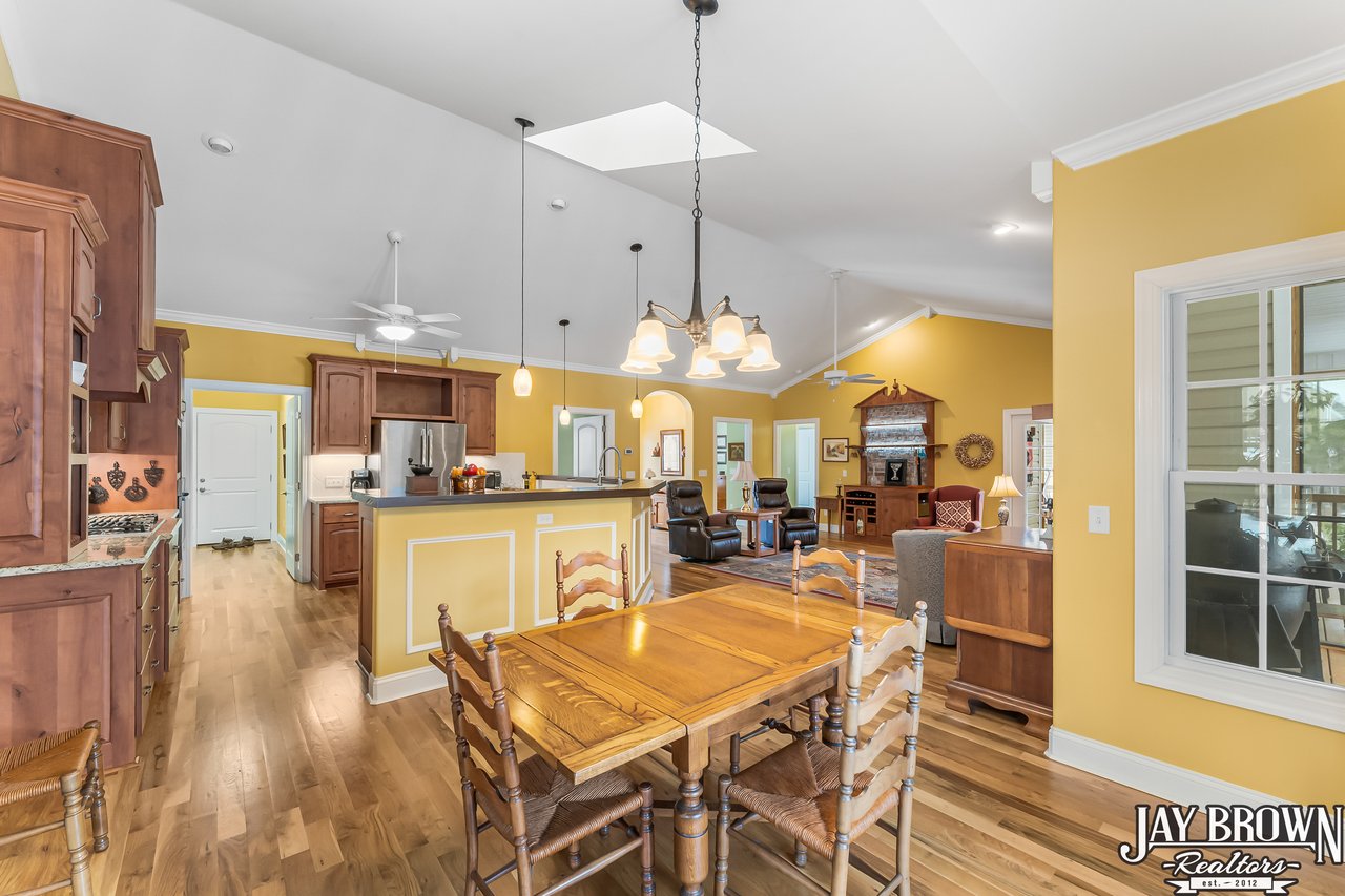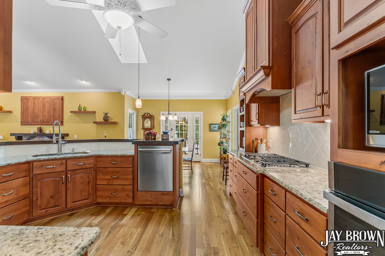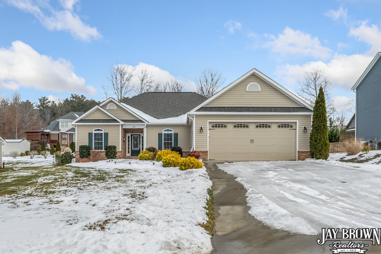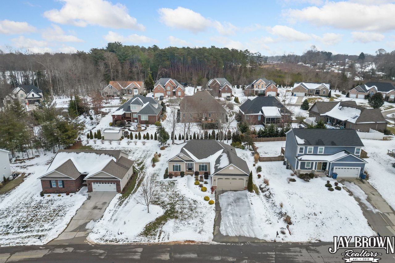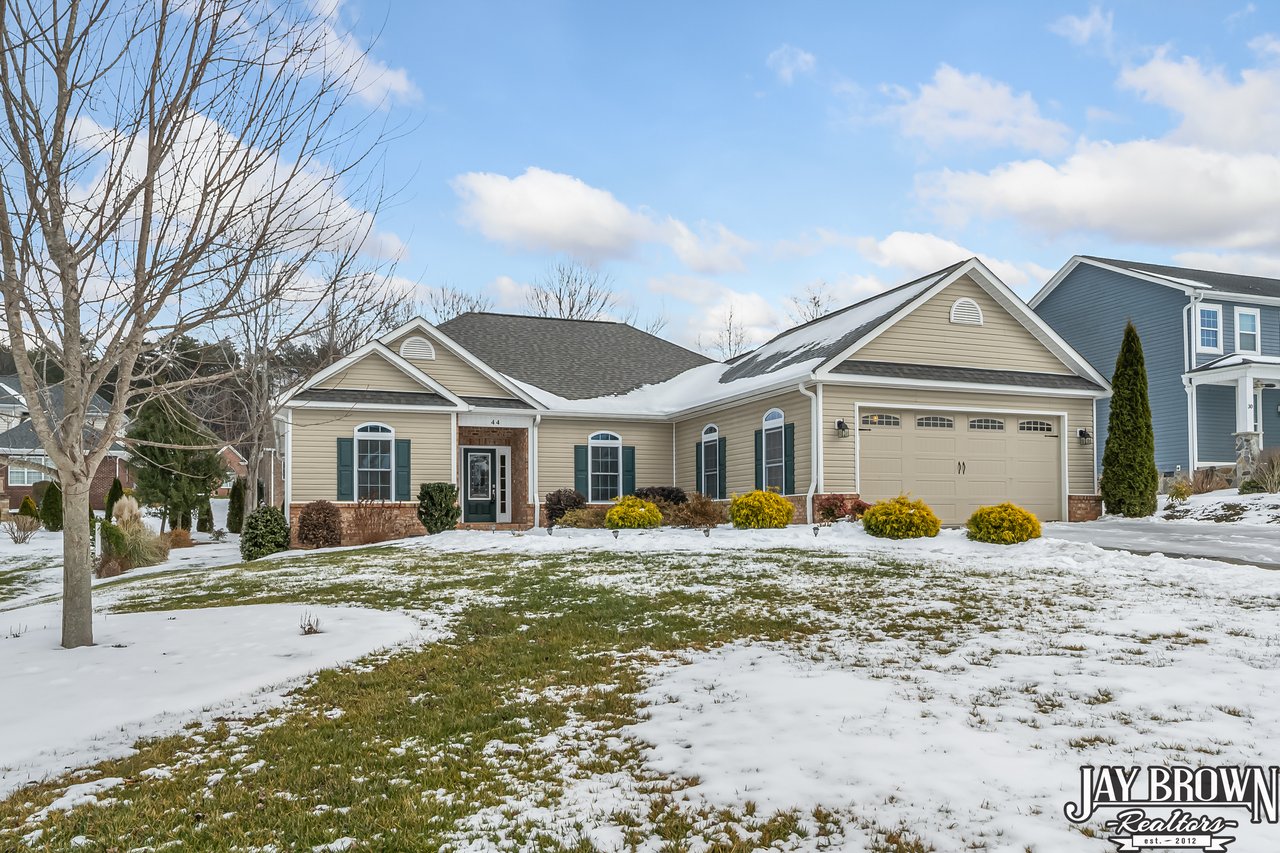 Stunning and immaculately maintained, this custom built 3BR/2BA home was thoughtfully designed and features high end details, one level living and is perfect for aging in place! Gorgeous white oak hardwood floors flow throughout! The spacious kitchen features an incredible amount of cabinet storage space, granite countertops, tile backsplash, bar seating, a gas stove top, large pantry and a raised dishwasher to make loading and unloading easy! Kitchen drawers are self-closing and cabinets are accented with high-end molding and custom dish display inserts. The kitchen overlooks a sun-filled eat-in area, perfect for entertaining. The open floor plan flows into the spacious living room with raised ceilings and natural gas fireplace. Primary bedroom offers hardwood floors and a custom primary bath with large vanity, double sinks, linen storage and oversized walk-in closet. Spacious primary walk-in shower is tiled and features a zero-threshold entry and custom shower bench. Two more bedrooms complete the split bedroom floor plan, along with a second large full bath. The beautiful covered porch can be accessed from two different locations inside and wraps around the back of the home, offering a large screened-in sitting area and open outdoor deck space. Oversized doorways measure 36in, allowing for easy wheelchair access and there are no steps in the home! Tankless water heater, double hung windows, storm water drainage system in the backyard, and the skylight features a rain sensor and remote opening/closing ability. Lawn and flower beds feature an irrigation system. Custom wine bar with wine fridge area. Wonderful location featuring mature landscaping and no HOA dues! Large, level driveway and oversized garage. Located only minutes from grocery stores, shopping, Lake Hickory, Viewmont and Hwy 321!