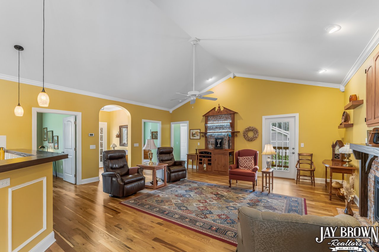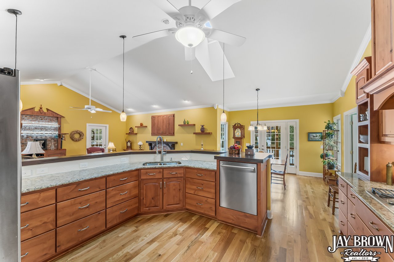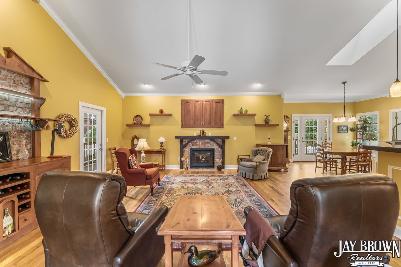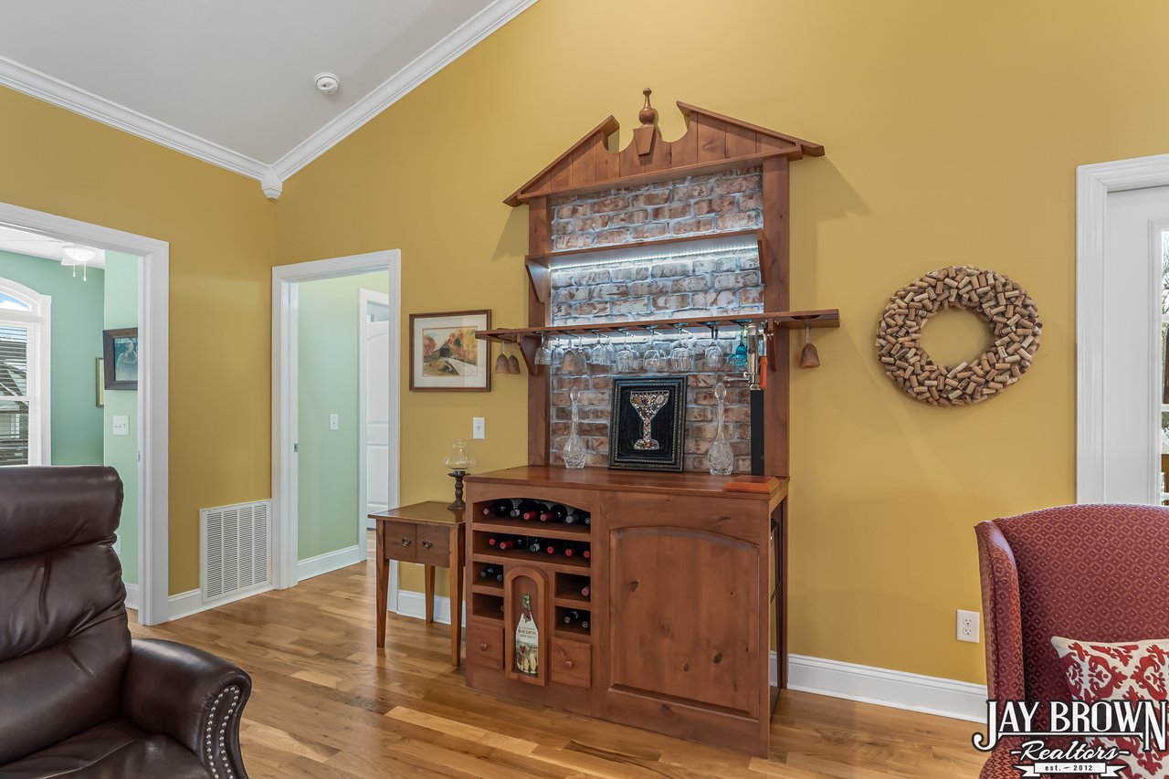 Stunning and immaculately maintained, this custom built 3BR/2BA home was thoughtfully designed and features high end details, one level living and is perfect for aging in place! Gorgeous white oak hardwood floors flow throughout! The spacious kitchen features an incredible amount of cabinet storage space, granite countertops, tile backsplash, bar seating, a gas stove top, large pantry and a raised dishwasher to make loading and unloading easy! Kitchen drawers are self-closing and cabinets are accented with high-end molding and custom dish display inserts. The kitchen overlooks a sun-filled eat-in area, perfect for entertaining. The open floor plan flows into the spacious living room with raised ceilings and natural gas fireplace. Primary bedroom offers hardwood floors and a custom primary bath with large vanity, double sinks, linen storage and oversized walk-in closet. Spacious primary walk-in shower is tiled and features a zero-threshold entry and custom shower bench. Two more bedrooms complete the split bedroom floor plan, along with a second large full bath. The beautiful covered porch can be accessed from two different locations inside and wraps around the back of the home, offering a large screened-in sitting area and open outdoor deck space. Oversized doorways measure 36in, allowing for easy wheelchair access and there are no steps in the home! Tankless water heater, double hung windows, storm water drainage system in the backyard, and the skylight features a rain sensor and remote opening/closing ability. Lawn and flower beds feature an irrigation system. Custom wine bar with wine fridge area. Wonderful location featuring mature landscaping and no HOA dues! Large, level driveway and oversized garage. Located only minutes from grocery stores, shopping, Lake Hickory, Viewmont and Hwy 321!