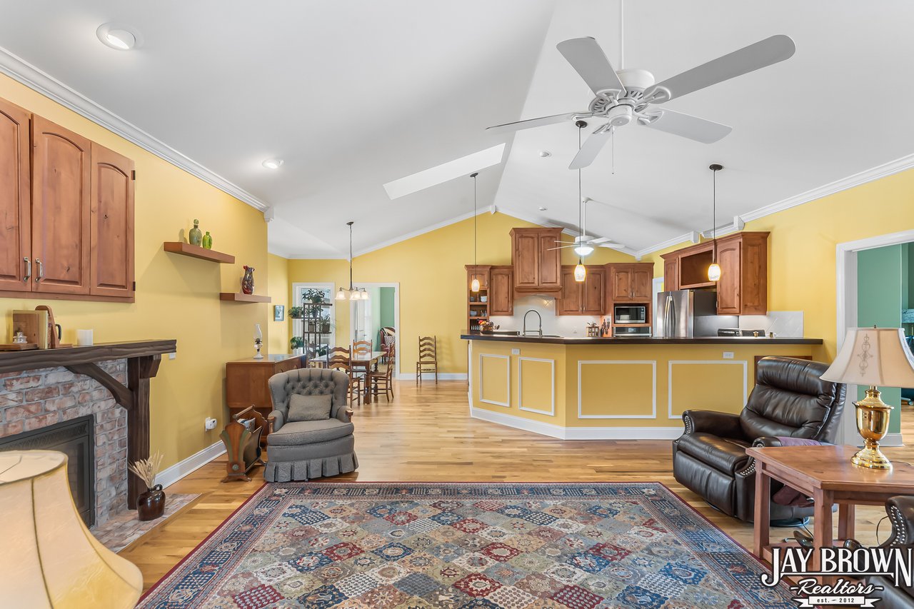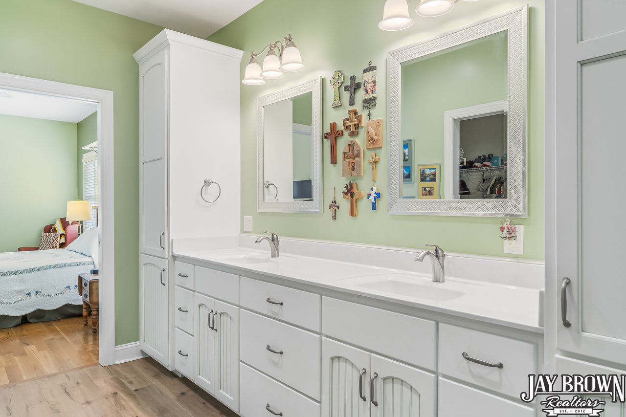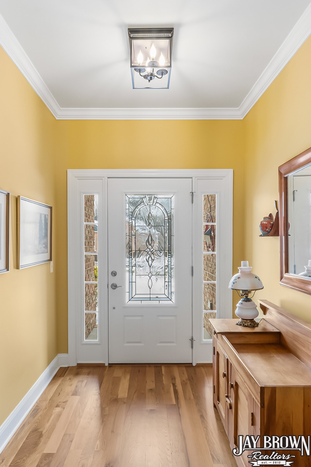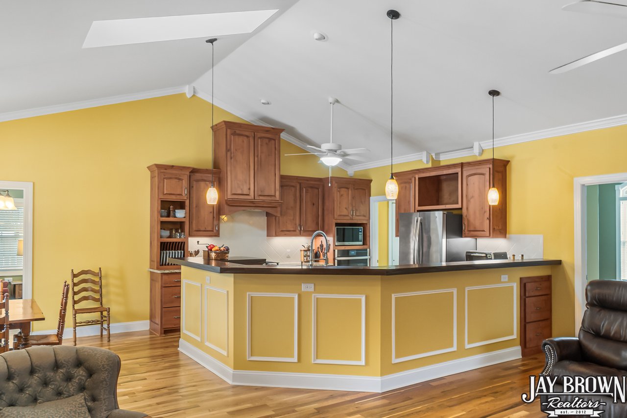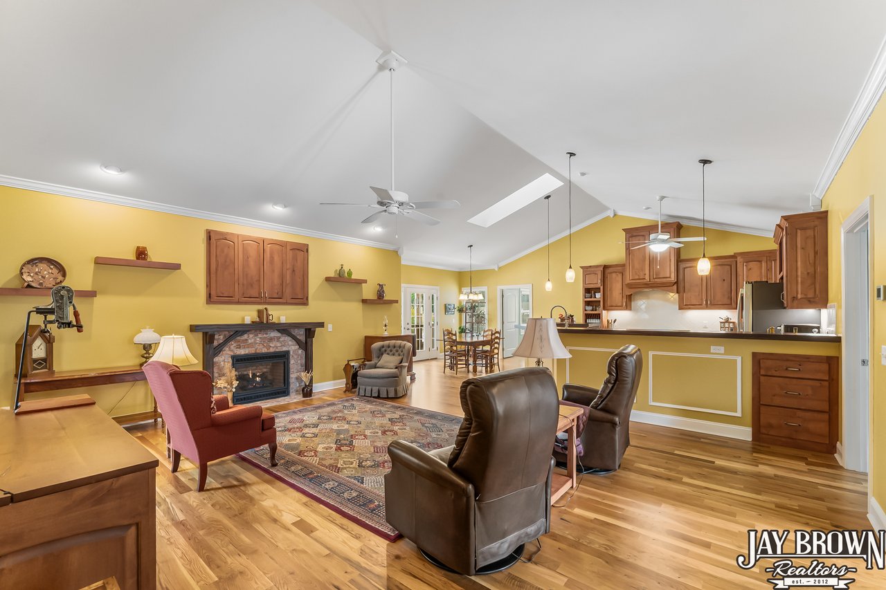 Stunning and immaculately maintained, this custom built 3BR/2BA home was thoughtfully designed and features high end details, one level living and is perfect for aging in place! Gorgeous white oak hardwood floors flow throughout! The spacious kitchen features an incredible amount of cabinet storage space, granite countertops, tile backsplash, bar seating, a gas stove top, large pantry and a raised dishwasher to make loading and unloading easy! Kitchen drawers are self-closing and cabinets are accented with high-end molding and custom dish display inserts. The kitchen overlooks a sun-filled eat-in area, perfect for entertaining. The open floor plan flows into the spacious living room with raised ceilings and natural gas fireplace. Primary bedroom offers hardwood floors and a custom primary bath with large vanity, double sinks, linen storage and oversized walk-in closet. Spacious primary walk-in shower is tiled and features a zero-threshold entry and custom shower bench. Two more bedrooms complete the split bedroom floor plan, along with a second large full bath. The beautiful covered porch can be accessed from two different locations inside and wraps around the back of the home, offering a large screened-in sitting area and open outdoor deck space. Oversized doorways measure 36in, allowing for easy wheelchair access and there are no steps in the home! Tankless water heater, double hung windows, storm water drainage system in the backyard, and the skylight features a rain sensor and remote opening/closing ability. Lawn and flower beds feature an irrigation system. Custom wine bar with wine fridge area. Wonderful location featuring mature landscaping and no HOA dues! Large, level driveway and oversized garage. Located only minutes from grocery stores, shopping, Lake Hickory, Viewmont and Hwy 321!