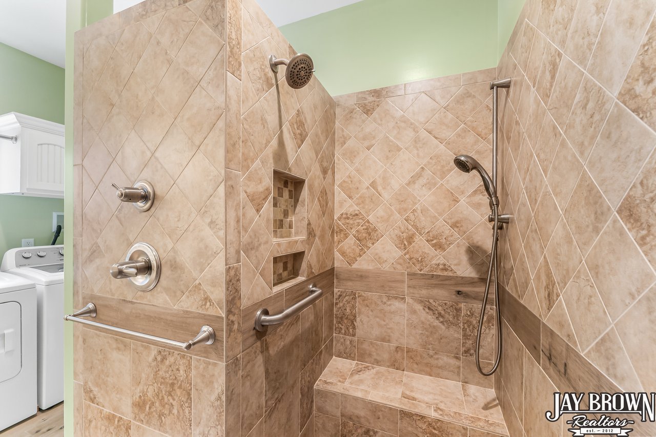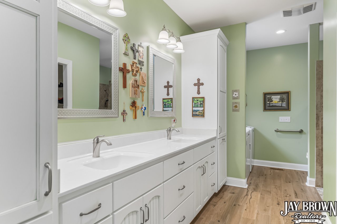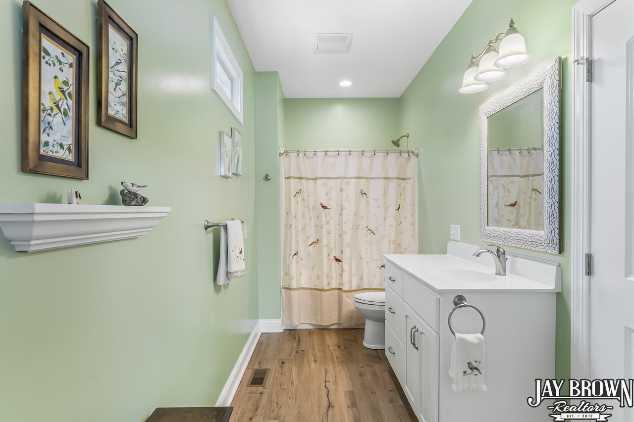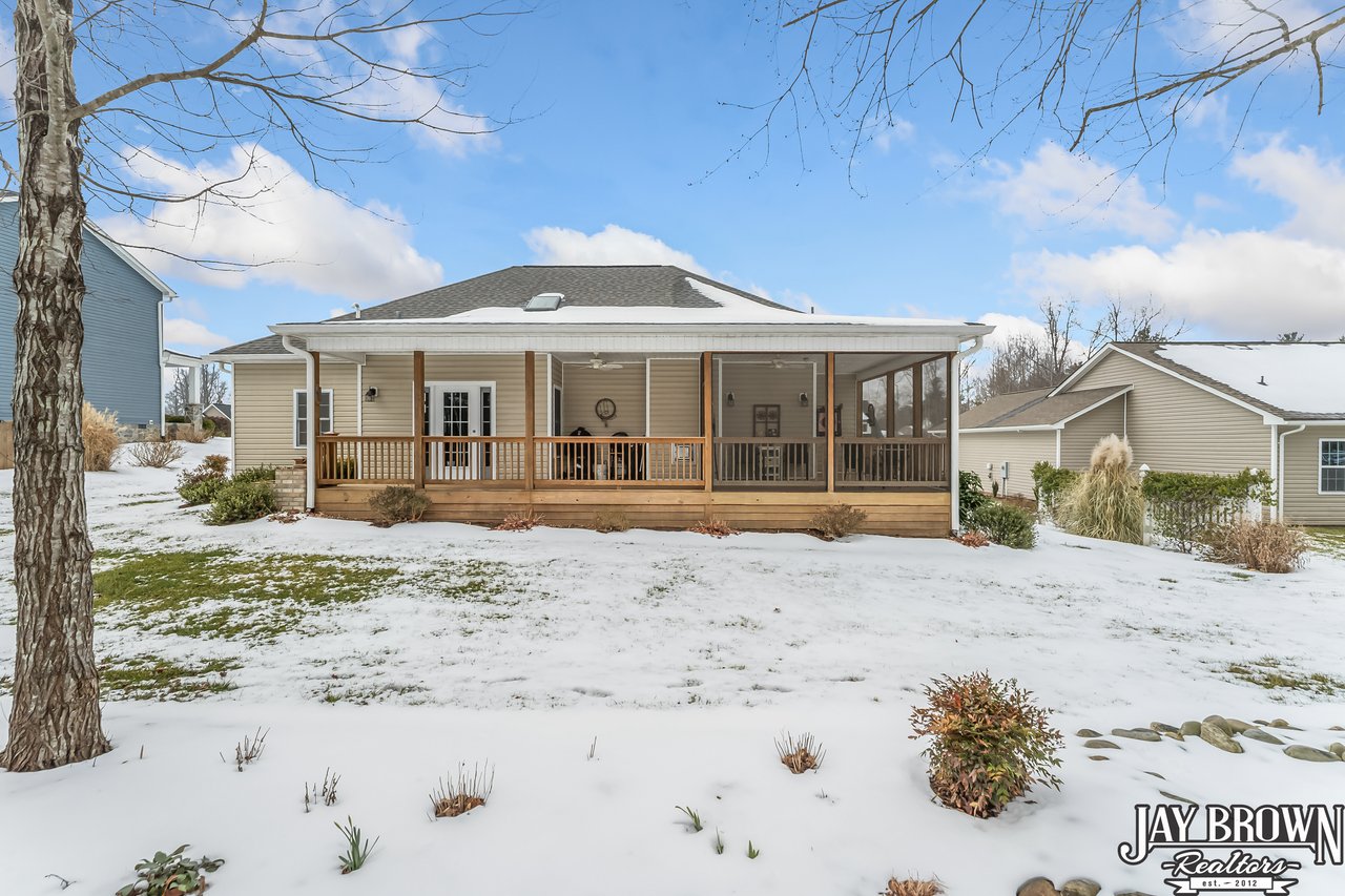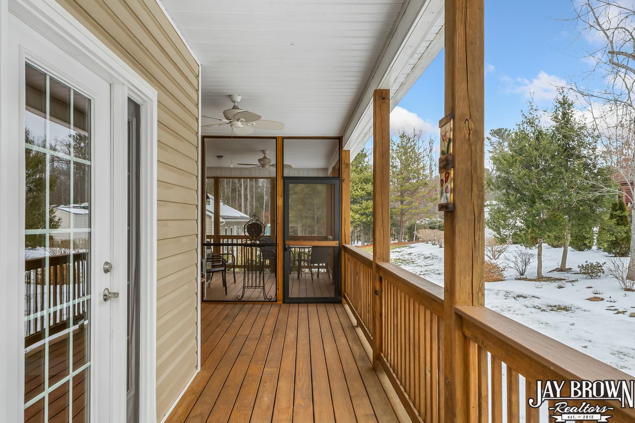 Stunning and immaculately maintained, this custom built 3BR/2BA home was thoughtfully designed and features high end details, one level living and is perfect for aging in place! Gorgeous white oak hardwood floors flow throughout! The spacious kitchen features an incredible amount of cabinet storage space, granite countertops, tile backsplash, bar seating, a gas stove top, large pantry and a raised dishwasher to make loading and unloading easy! Kitchen drawers are self-closing and cabinets are accented with high-end molding and custom dish display inserts. The kitchen overlooks a sun-filled eat-in area, perfect for entertaining. The open floor plan flows into the spacious living room with raised ceilings and natural gas fireplace. Primary bedroom offers hardwood floors and a custom primary bath with large vanity, double sinks, linen storage and oversized walk-in closet. Spacious primary walk-in shower is tiled and features a zero-threshold entry and custom shower bench. Two more bedrooms complete the split bedroom floor plan, along with a second large full bath. The beautiful covered porch can be accessed from two different locations inside and wraps around the back of the home, offering a large screened-in sitting area and open outdoor deck space. Oversized doorways measure 36in, allowing for easy wheelchair access and there are no steps in the home! Tankless water heater, double hung windows, storm water drainage system in the backyard, and the skylight features a rain sensor and remote opening/closing ability. Lawn and flower beds feature an irrigation system. Custom wine bar with wine fridge area. Wonderful location featuring mature landscaping and no HOA dues! Large, level driveway and oversized garage. Located only minutes from grocery stores, shopping, Lake Hickory, Viewmont and Hwy 321!