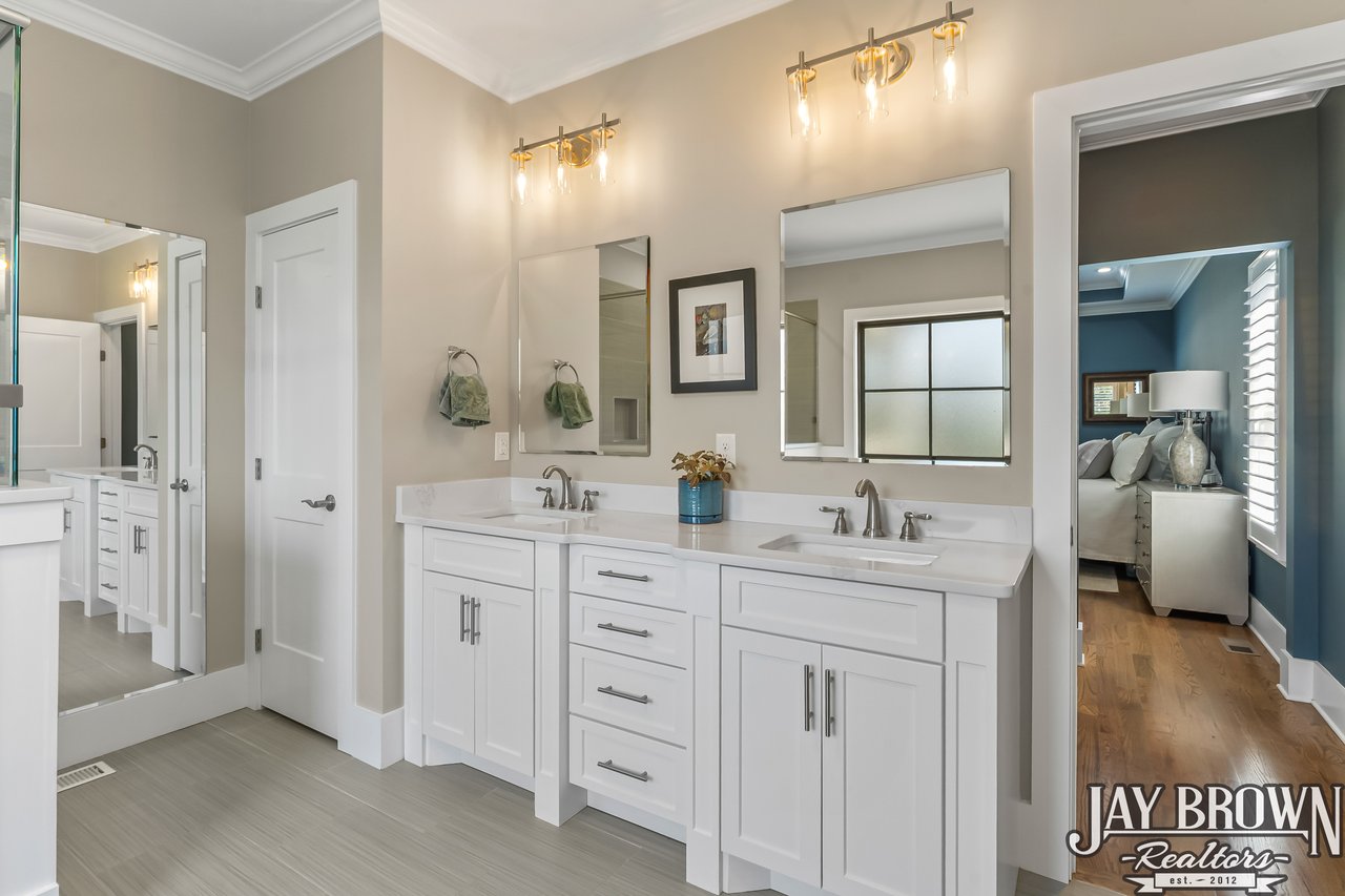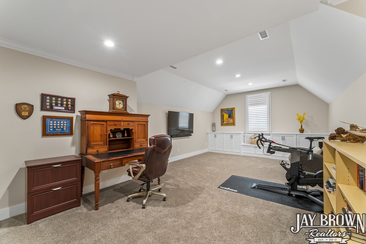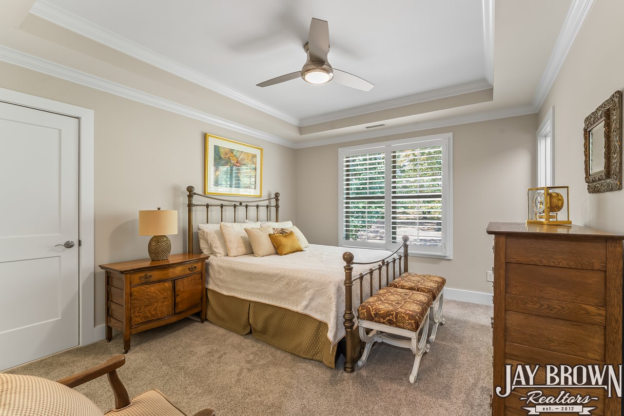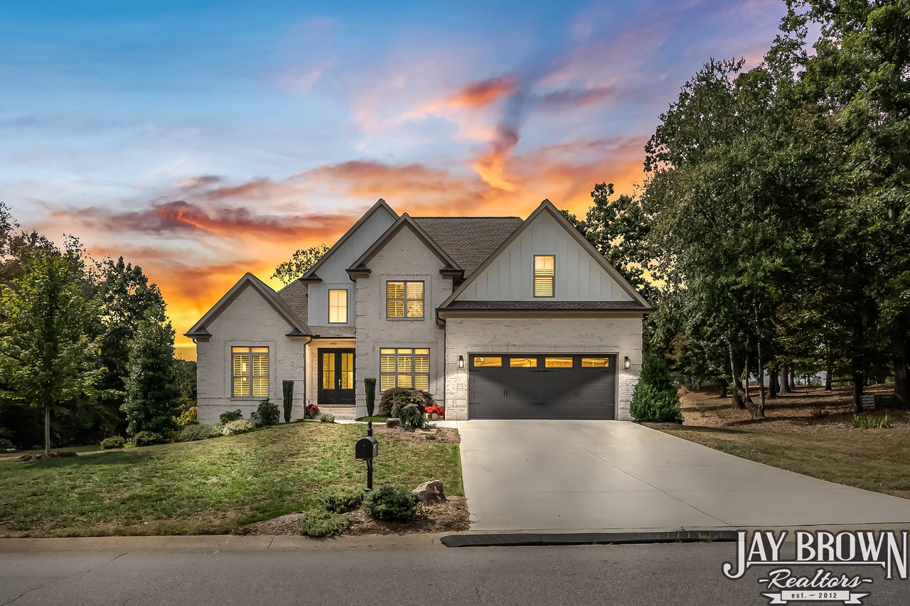Stunning, custom built 4BR/3BA brick home in the prestigious Oliver's Landing community that is full of sophisticated details, an incredible outdoor space and a full basement! Experience the luxury of life on Lake Hickory with a waterfront 18 hole golf course, pro shop & upcoming restaurant. Cathedral ceilings accent the beautiful open floor plan, highlighting the spacious living room which features custom built bookshelves, gas fireplace, large windows, chandelier and hardwoods that flow throughout the main level. Chef's kitchen features an oversized island with seating for four, stainless appliances, gas stovetop, pantry & eat-in area. Formal dining room offers extra entertaining space & tray ceilings. The spacious primary bedroom on the main level is accented with tray ceilings and offers a large walk-in closet. Primary bathroom offers incredible luxury with a beautiful glass enclosed tile shower, soaking tub & spacious double vanity. Custom built Fiberon side porch offers multiple entertaining areas & privacy shades. Enjoy the quiet covered sitting area, uncovered large dining/entertaining area, and the custom built hardscape area with a seating wall & fire pit. Large side yard offers raised beds. Main level features a study/bedroom for potential work from home office space or library nook. Second floor offers two large bedrooms and a full bath. Bedrooms could easily be used as additional office/study spaces. Bonus room features custom built cabinetry for storage. The incredibly spacious basement offers so much storage and the option to expand and further customize this incredible home! Basement has been rough plumbed for a bathroom. Further updates include installation of Leaf Gutter guards, Dry Pro dehumidifier installed in the basement, installation of plantation shutters, underground dog run and extensive professional landscaping. Community offers gated access to a private boat launch. Located only minutes from high end shopping and dining in Viewmont, football games at Lenoir-Rhyne University and events in Downtown Hickory! *55 and older community.
