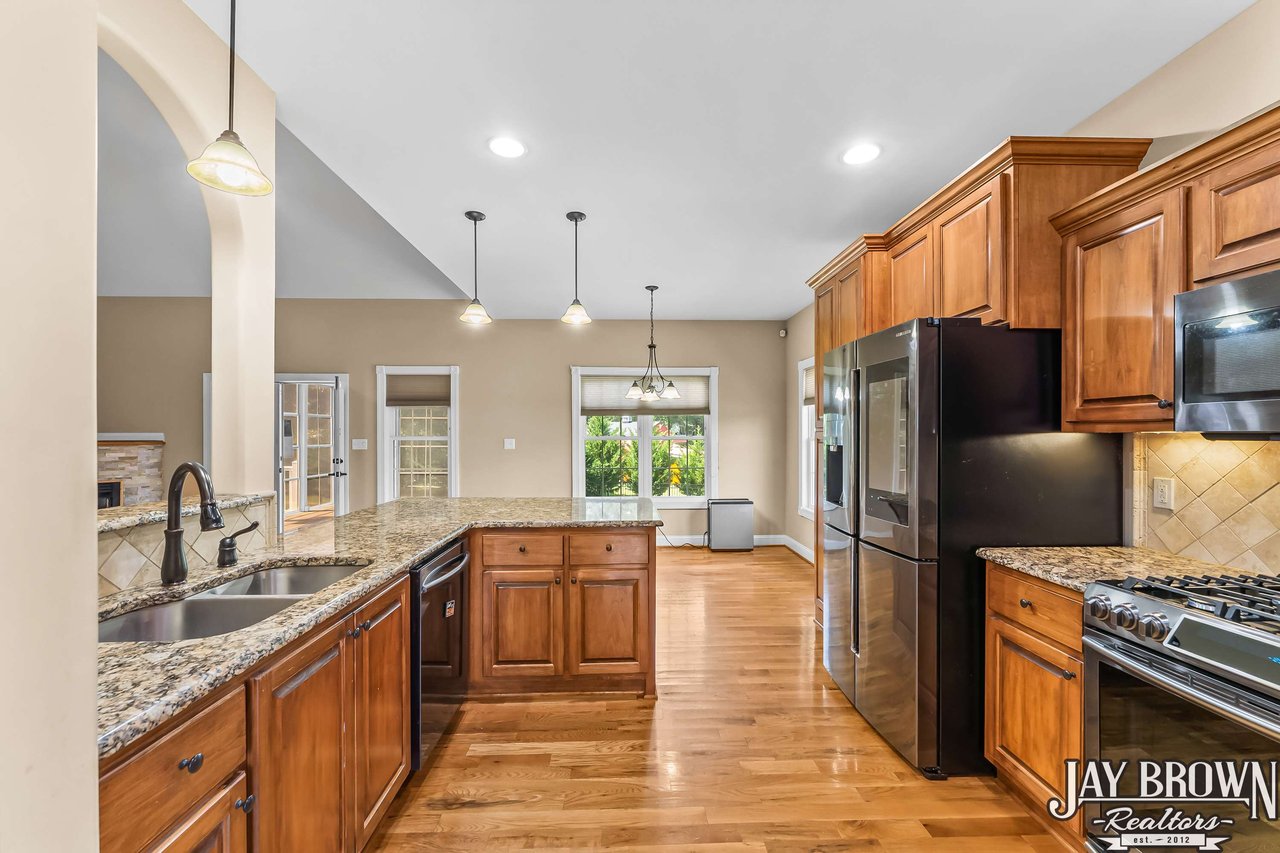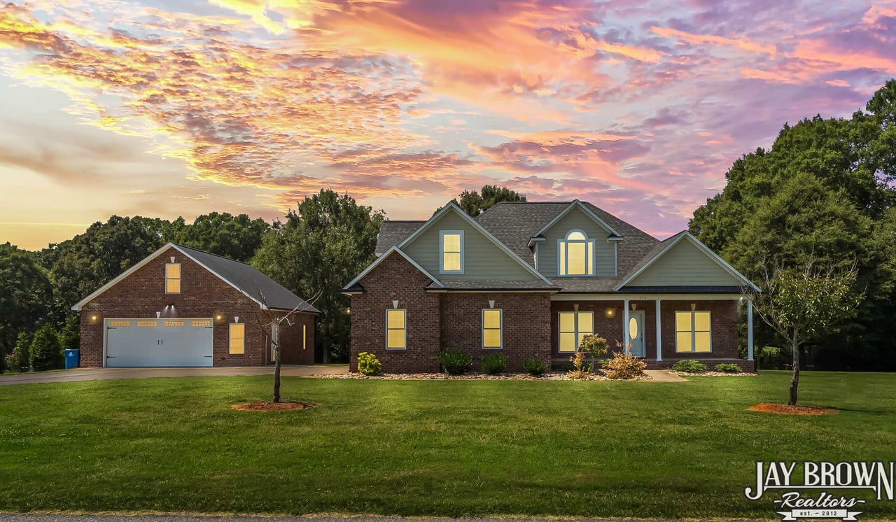 BEAUTIFUL 4BR/2.5BA brick home that offers a two car garage, detached garage ready for all your hobbies, sunroom, fenced in backyard & sits on just under an acre! Spacious primary bedroom on main, along with primary bath featuring tile shower, soaking tub, dual vanity. Incredible kitchen with granite countertops, bar seating, & plenty of storage space. Beautiful sunroom, dedicated office and laundry on main. The open floor plan flows into the living room, which offers vaulted ceilings & stone accented gas fireplace. Beautiful hardwoods flow through the main level. Dining room is perfect for entertaining. Three bedrooms and full bathroom on upper with plenty of closet space. Back deck area looks out into mature trees. Perfect location with an easy commute to Hickory, Conover, or Maiden! Call to schedule your private tour today!